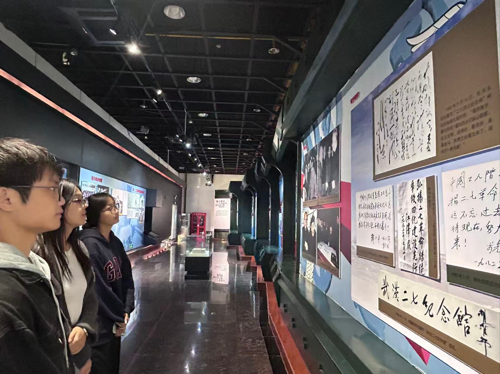 参观结束后,学生们围绕“二七精神”展开热烈讨论。江可同学感慨道:“以前在课本上学到‘二七大罢工’,总觉得很遥远。今天看到这些珍贵的文物和影像,才真切感受到‘团结奋斗、不怕牺牲’的内涵,这是用生命践行的信仰。”梁魏佳同学表示,林祥谦烈士宁死不屈的气节令人敬佩,这种为正义与理想坚守原则的精神,在当下仍具有重要意义,无论是学习还是未来工作,都需要这份坚定与担当。陈良鹏同学从时代责任的角度谈到,从“二七大罢工”到如今劳动者权益保障的不断完善,工人阶级的奋斗从未停歇,作为新时代青年,要传承“敢于斗争、追求公平”的精神,为社会发展贡献力量。张玉玲同学则表示,此次参观加深了她对武汉红色历史的了解,“二七精神”值得代代相传。