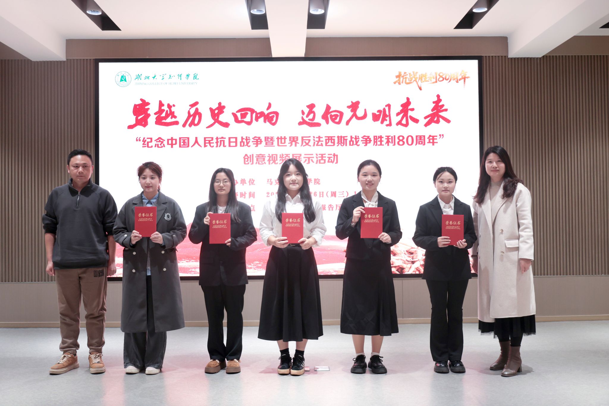 此次创意视频展示活动,以青年群体喜闻乐见的视频形式为载体,将厚重的抗战历史转化为鲜活的青春话语。通过创新表达强化价值引领,不仅引导学生在回顾历史中坚定理想信念,更在光影叙事中凝聚起奋进新征程的青春力量,为校园爱国主义教育与思政育人实践提供了生动范例。(审稿:胡正燕)