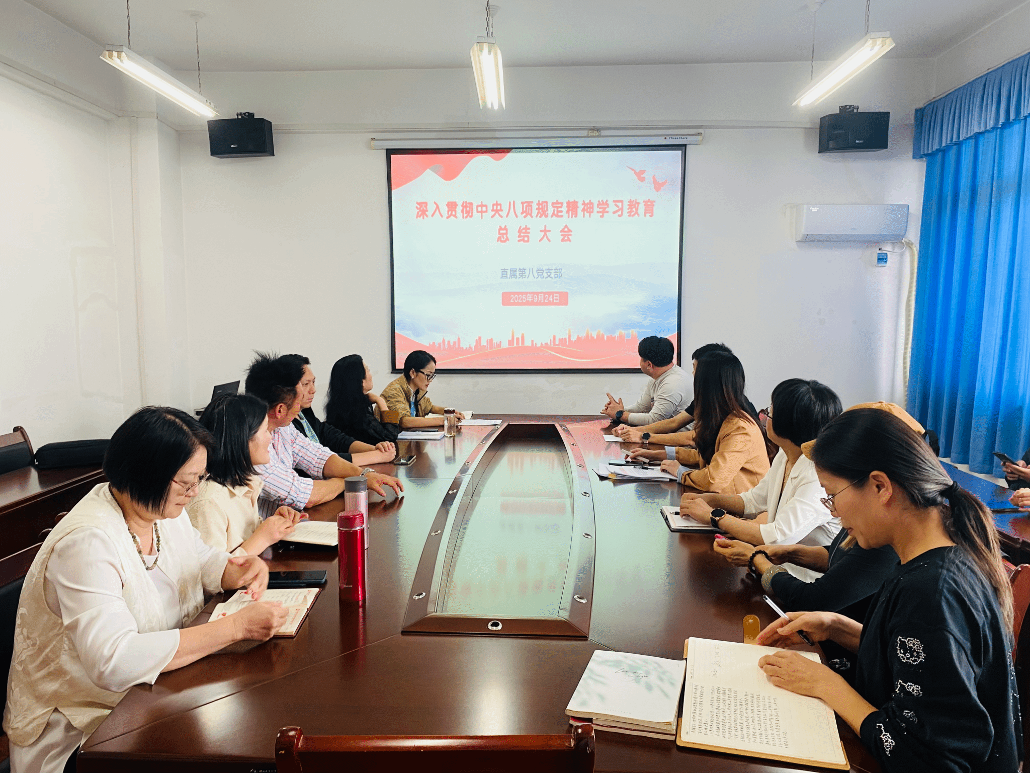 2025年9月24日下午,直属第八党支部在知远楼410会议室召开“深入贯彻中央八项规定精神学习教育总结大会”,全体党员参会,会议由支部书记胡正燕主持。